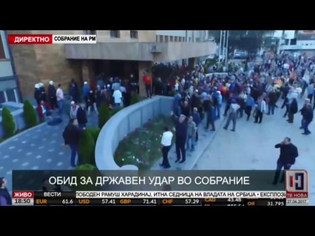 Как сообщает Reuters, несколько сотен человек под стенами Собрания Македонии пели гимн и скандировали лозунги с требованиями переизбрания законодательного органа. Группа людей вступила в стычку с полицией, около 200 человек ворвались в здание парламента.