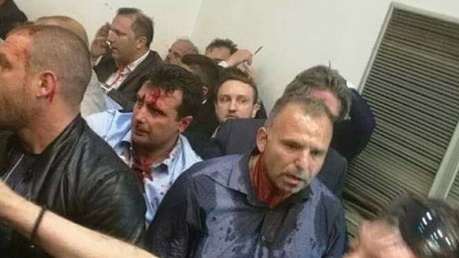 Спецотряд полиции прибыл на место для подавления беспорядков не сразу. За это время в сессионном зале жестоко избили нескольких депутатов. Среди травмированных – лидер фракции социал-демократов Зоран Заев.
