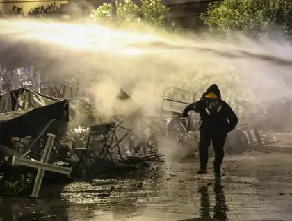В субботу полиция применила слезоточивый газ и водометы, чтобы отогнать демонстрантов от президентского дворца. Также задержаны пять активистов.