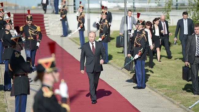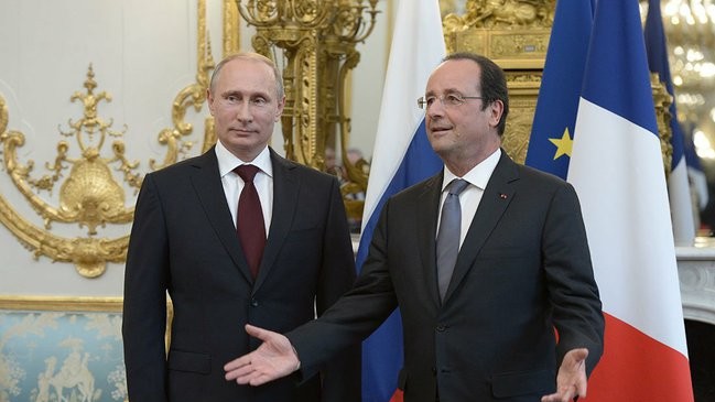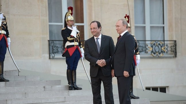 В отличие от встречи Путина с премьером Великобритании Дэвидом Кэмероном, встреча с хозяином Элисейского дворца прошла в позитивной атмосфере и с рукопожатием глав двух государств.