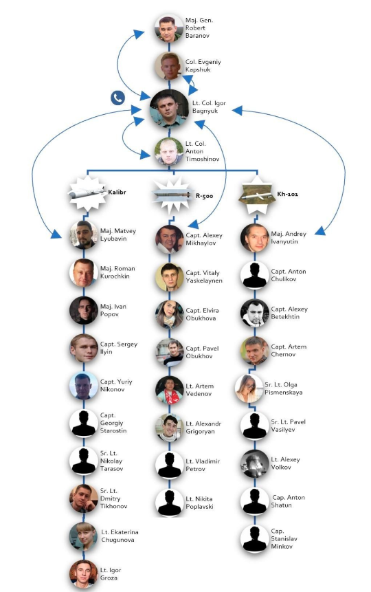 Руководит ГВЦ генерал-майор Роберт Баранов, его подчиненный, полковник Игорь Багнюк, возглавляет подразделение наведения ракет из 33 военных инженеров и айтишников, занимающихся разработкой полетных заданий.