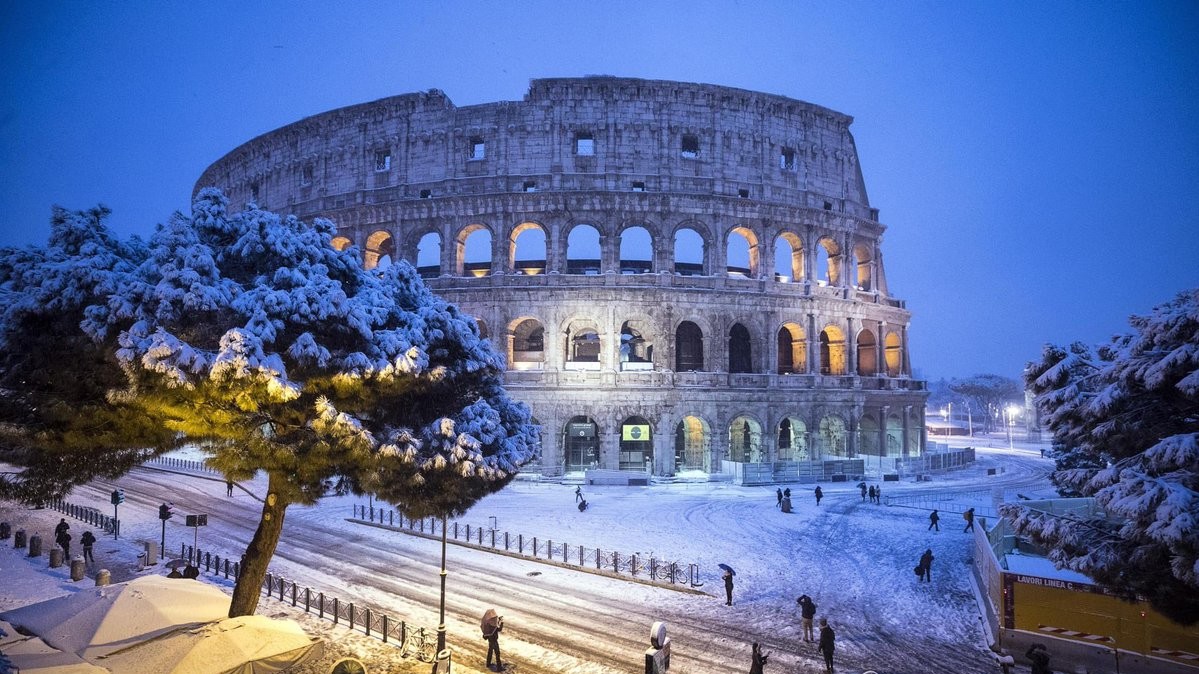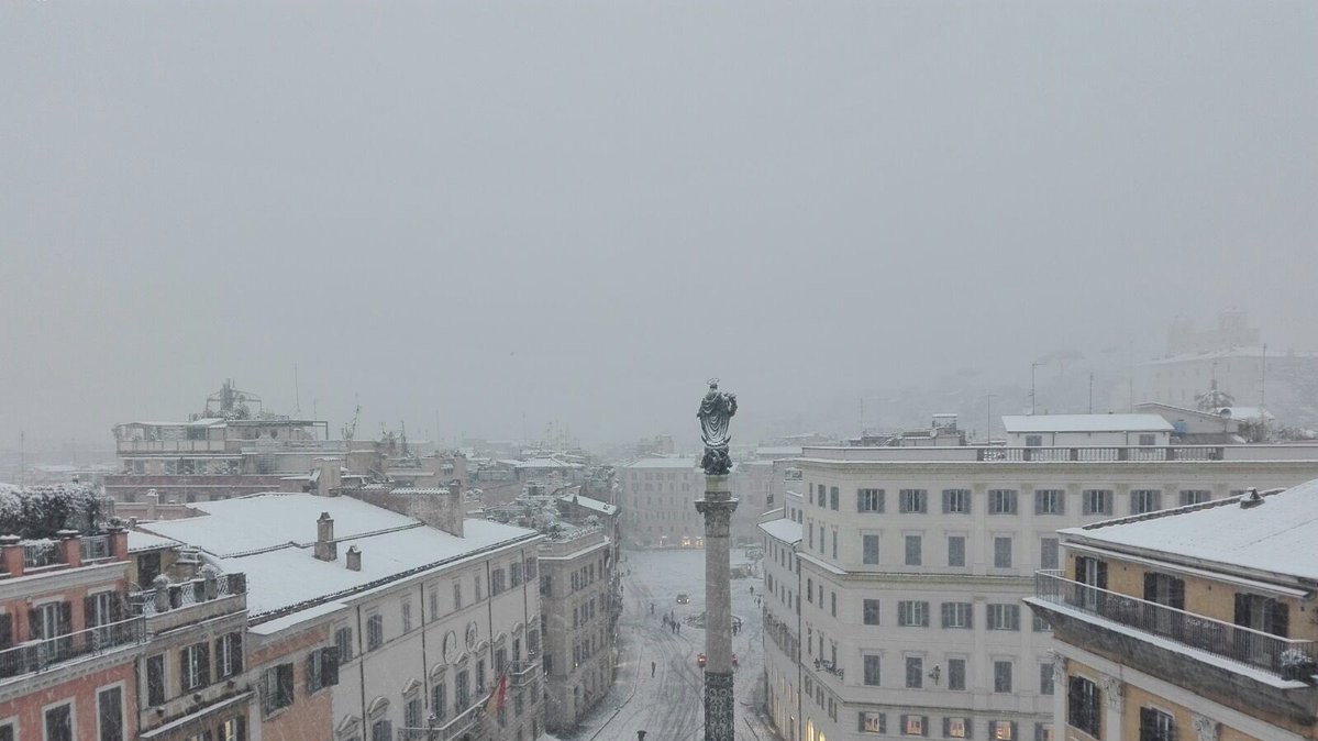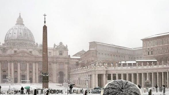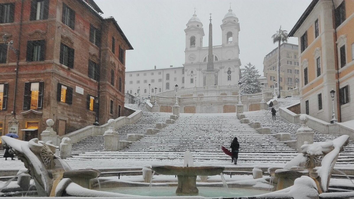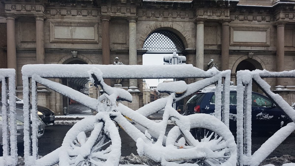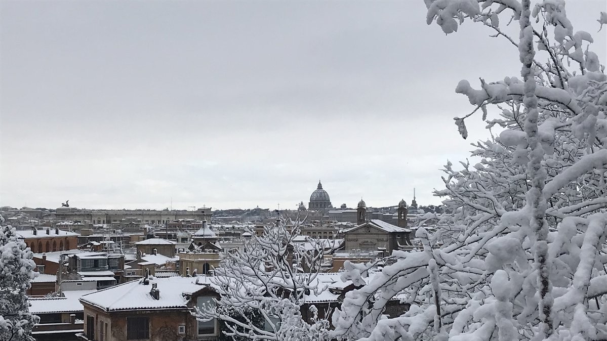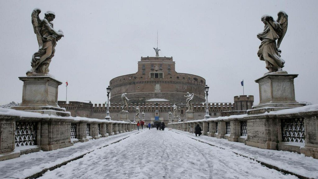 В ночь на понедельник в Риме впервые за шесть лет выпал снег. Температура также упала на 10 градусов ниже нормы: ночью снижается до -5°C, а днем составляет от 0°C до +3°C.