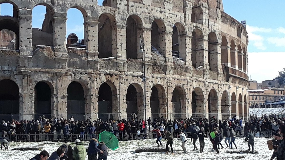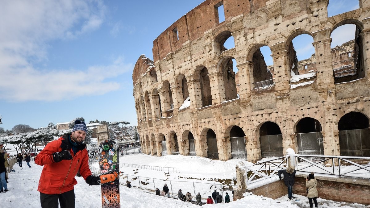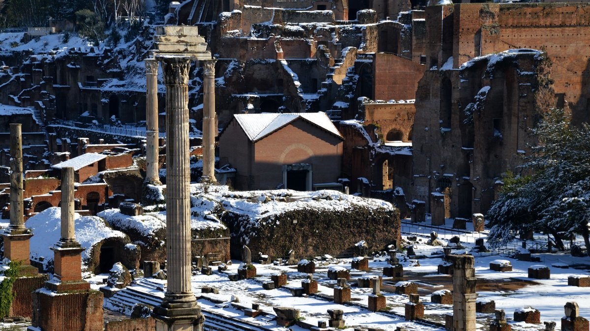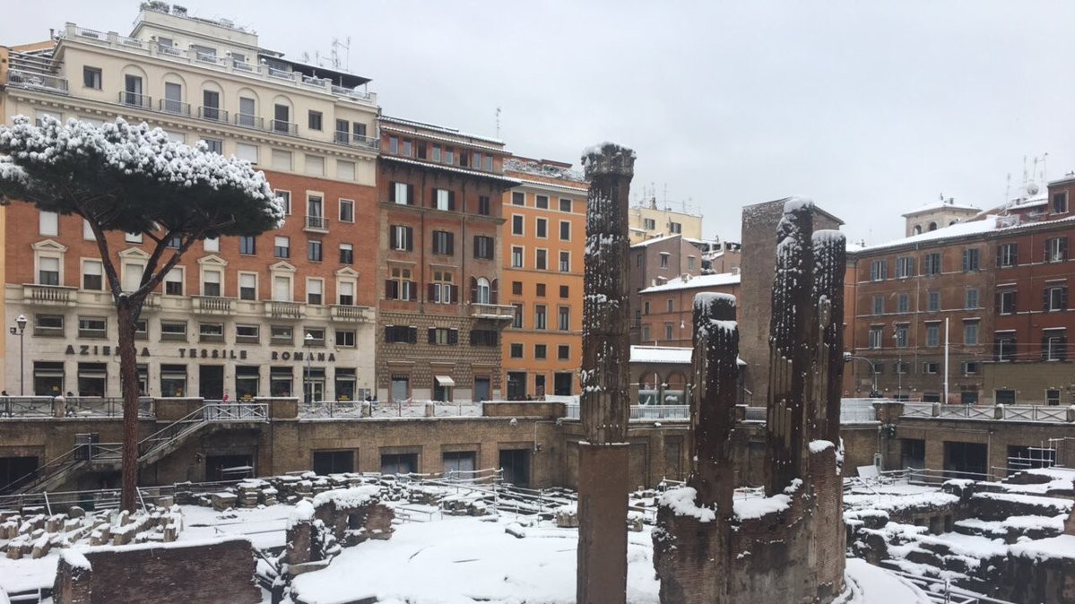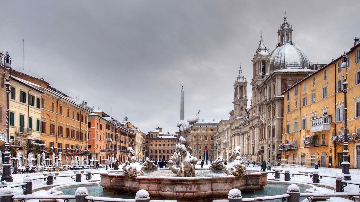 В ночь на понедельник в Риме впервые за шесть лет выпал снег. Температура также упала на 10 градусов ниже нормы: ночью снижается до -5°C, а днем составляет от 0°C до +3°C.