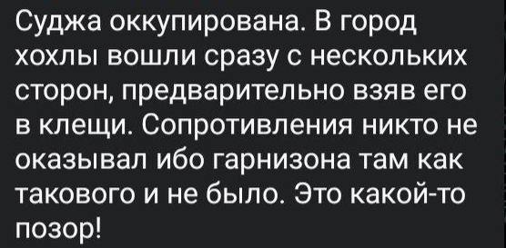 Местные паблики сообщают о якобы захвате украинскими военными города Суджа и контроле над газоизмерительной станцией.