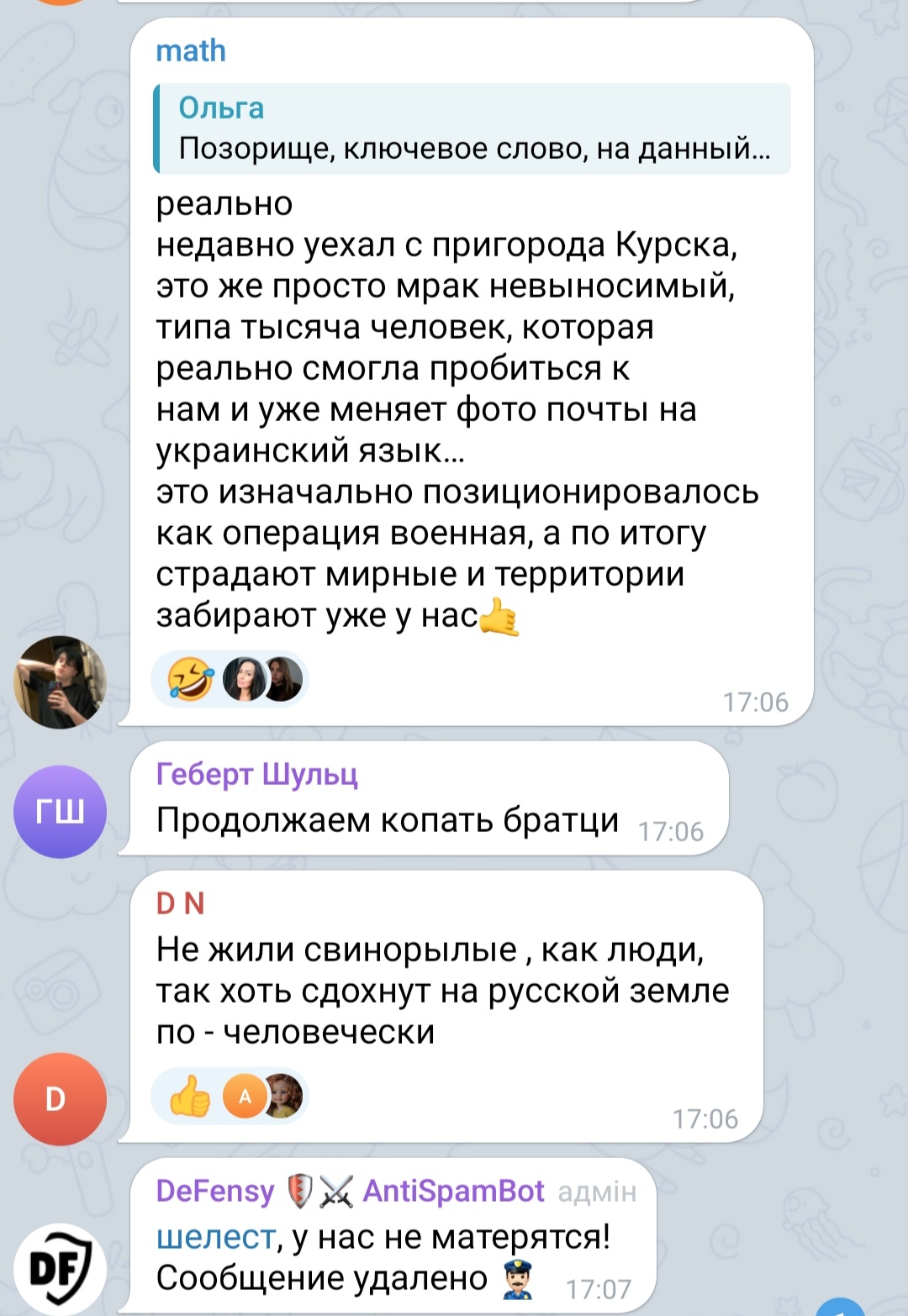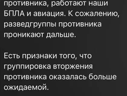 Накануне власти Курской области и российские военные блоггеры сообщили, что якобы украинские военные прорвали российскую границу в Суджанском и Кореневском районах. Сегодня в пропагандистских Telegram-каналах началась настоящая паника из-за "успешного продвижения ВСУ".