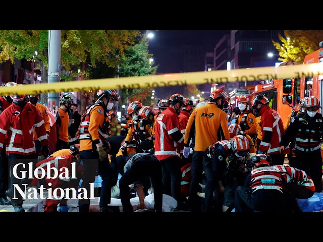 É possível assistir nitidamente o desespero da população na Coreia do Sul, enquanto comemoravam o Halloween direto de Seul. Que cena lamentável!
