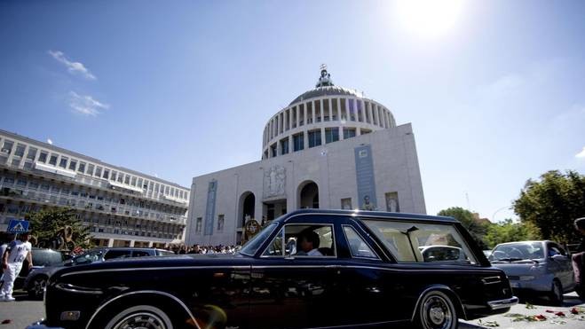 Сам храм по случаю похорон был украшен изображениями босса в белом костюме с надписью "Витторио Казамоника - царь Рима". Кроме того, над главным входом в церковь был укреплен транспарант "Ты завоевал Рим, теперь ты завоюешь рай".