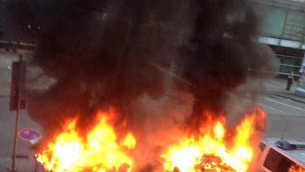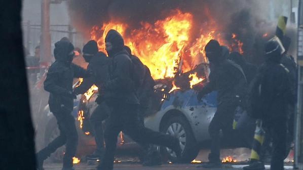 Участники акции протеста во Франкфурте подожгли автомобили, бросали камнями в полицейских, один из них был ранен, сообщает немецкое издание Die Zeit.