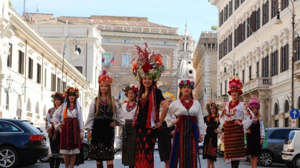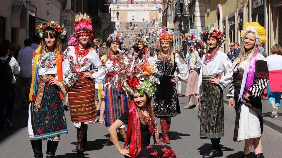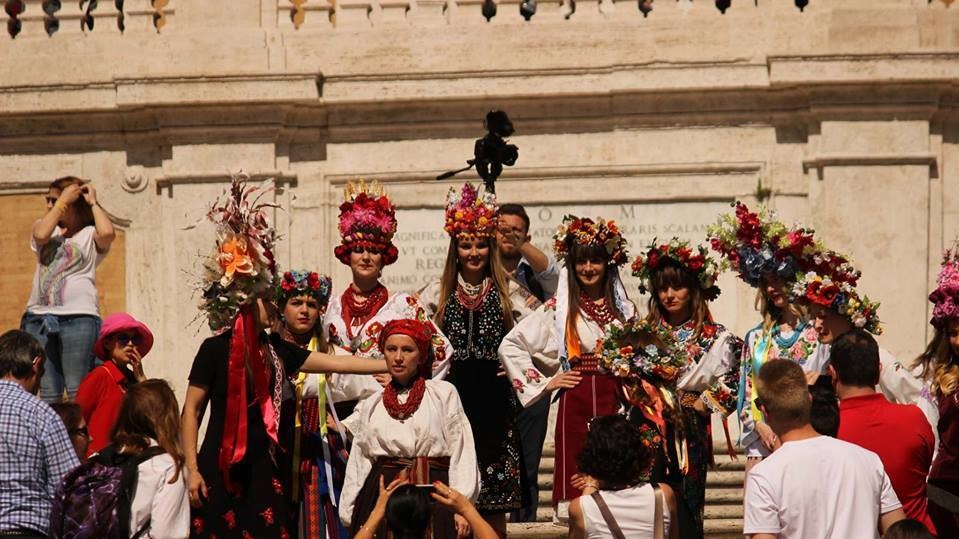 По случаю Всемирного Дня вышиванки, 12 украинских красавиц в национальных нарядах провели творческое мероприятие в исторической части итальянской столицы. Они прошли импровизированным шествием от Колизея до площади Испании, демонстрируя украинскую национальную одежду римлянам и многочисленным туристам. Кульминацией мероприятия стало дефиле по "Испанской лестнице", где обычно происходят показы мод, сообщает на своей странице в Фейсбук Олесь Городецкий.