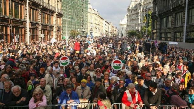 Тысячи демонстрантов призвали прекратить диктат правящей партии ФИДЕС.