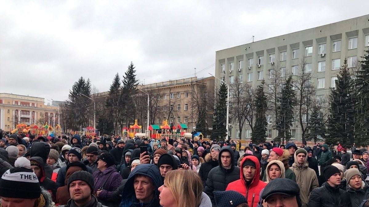 Утром во вторник на площади Советов собралось около 300 человек, затем количество протестующих стало увеличиваться. К жителям Кемерова вышел вице-губернатор Кемеровской области Сергей Цивилев, сообщает "Интерфакс".