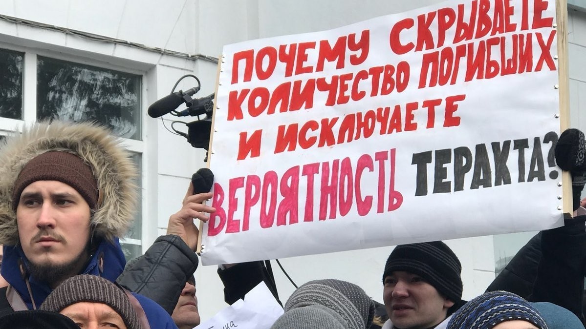 Горожане требуют от властей рассказать правду о произошедшей в воскресенье трагедии. Многие люди не верят, что официальное число жертв соответствует действительности. Другие считают, что сразу после начала пожара к ТЦ прибыло слишком мало спасателей, которые не сделали всего необходимого для спасения людей. Время от времени толпа начинает скандировать "Правду!" и "В отставку!".