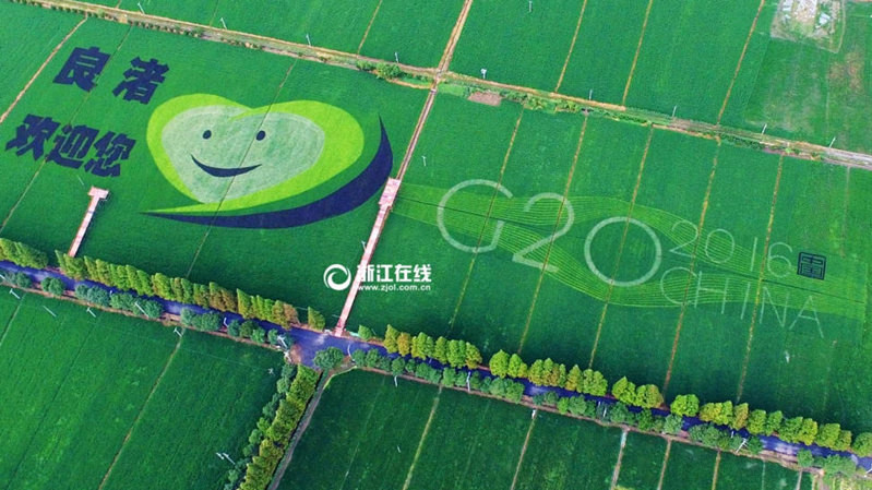 Издание пишет, что это самое "художественное" рисовое поле в Ханчжоу. Если посмотреть на него с высоты, то можно увидеть большой рисунок G20 и надпись "Приветствуем вас на улице Лянчжу", а также смайлик.
