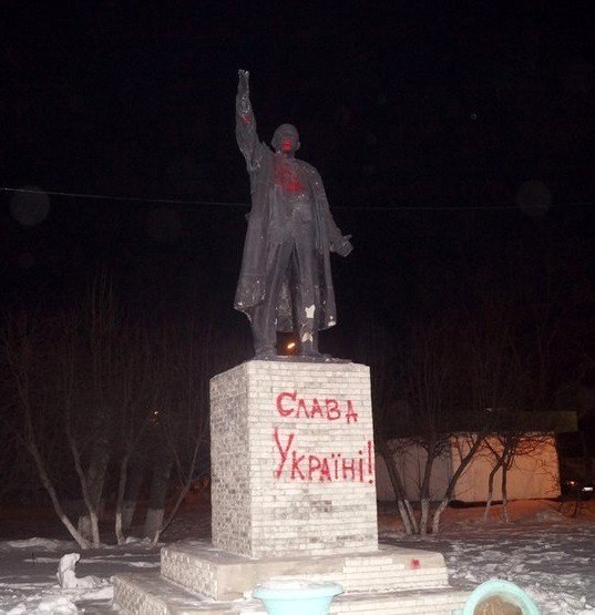 В Красноярске неизвестные написали на памятнике Владимиру Ленину "Слава Україні!". Монумент облили красной краской, сообщает портал "Сибинфо".