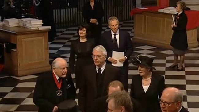 Приглашения приехать на церемонию похорон Маргарет Тэтчер получили около двух тысяч человек. Впервые с похорон Уинстона Черчилля в 1965 году на церемонии прощания с британским политиком присутствует королева.