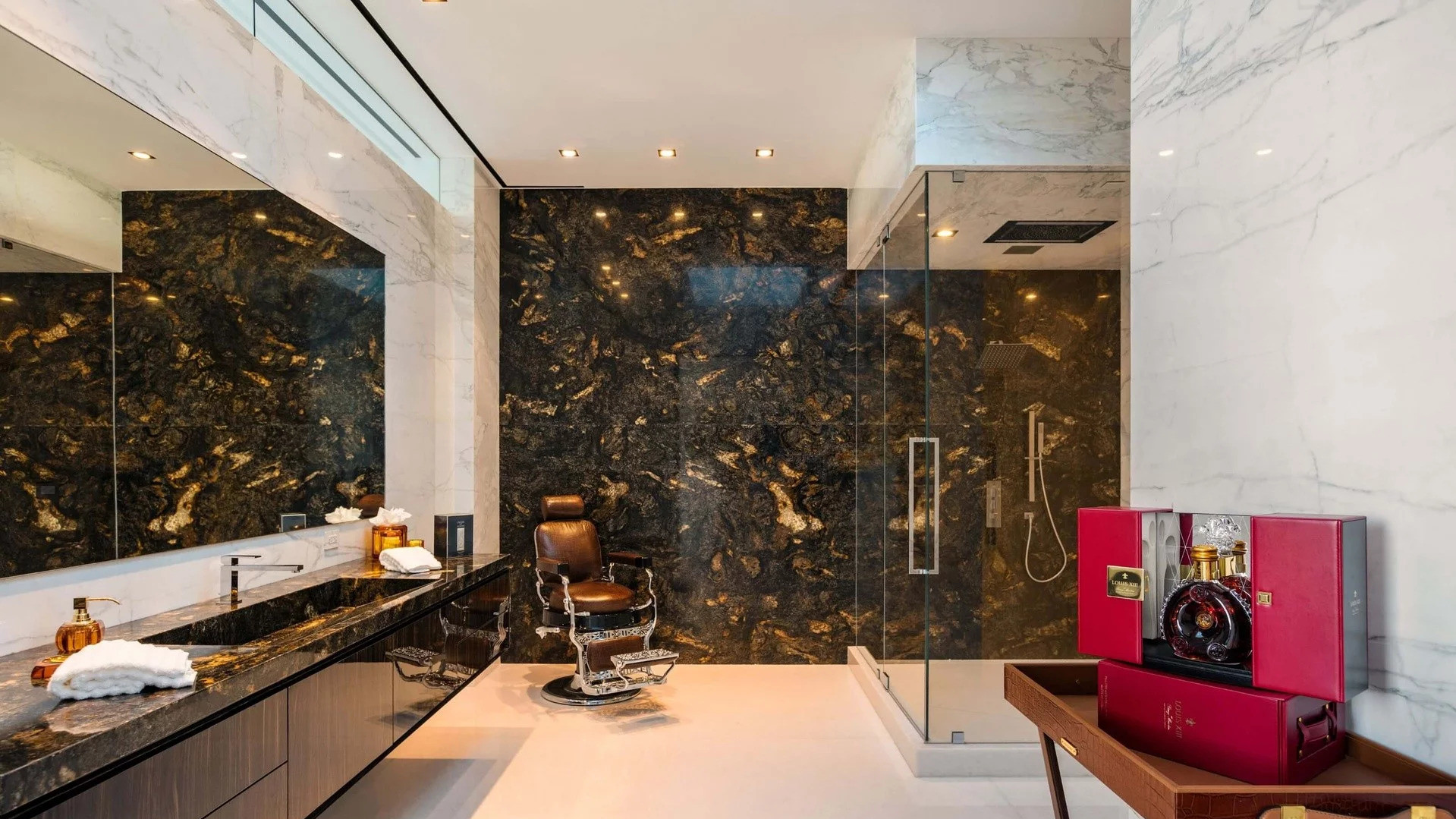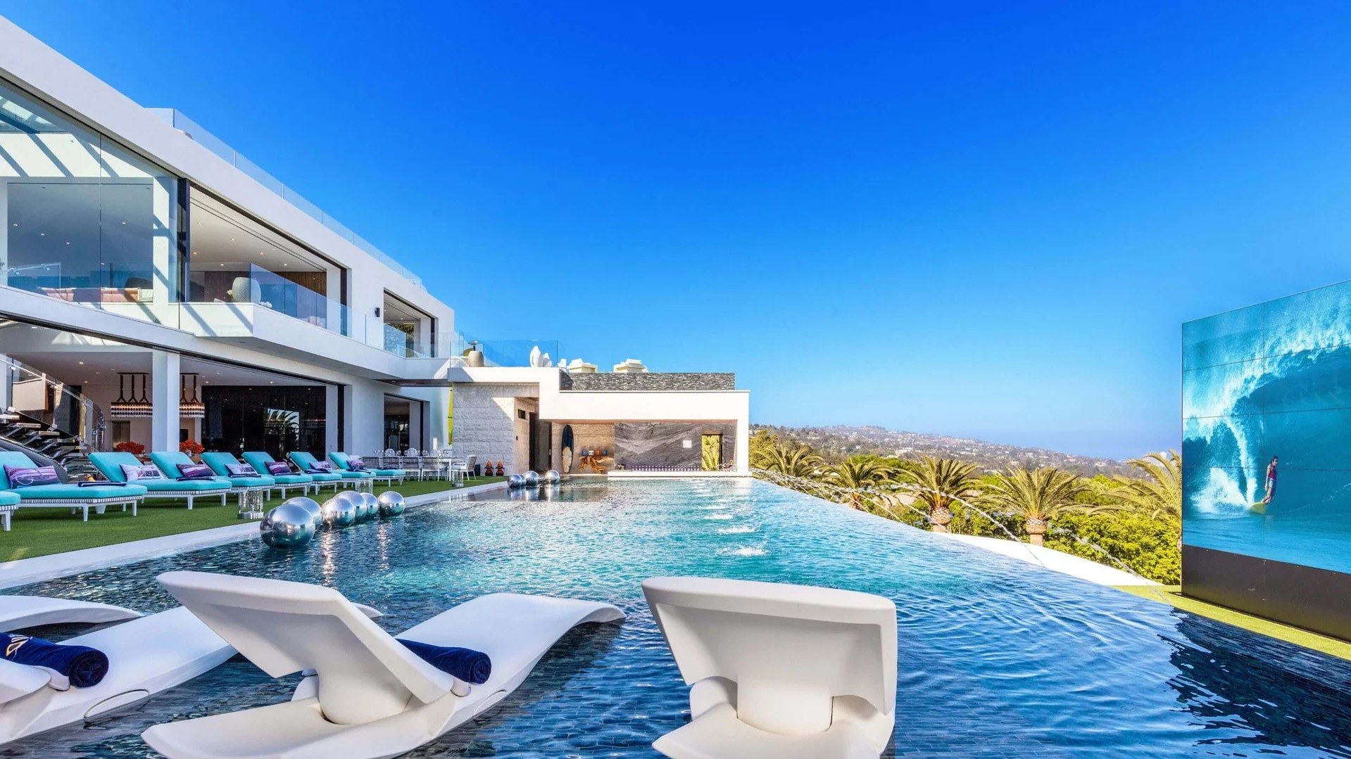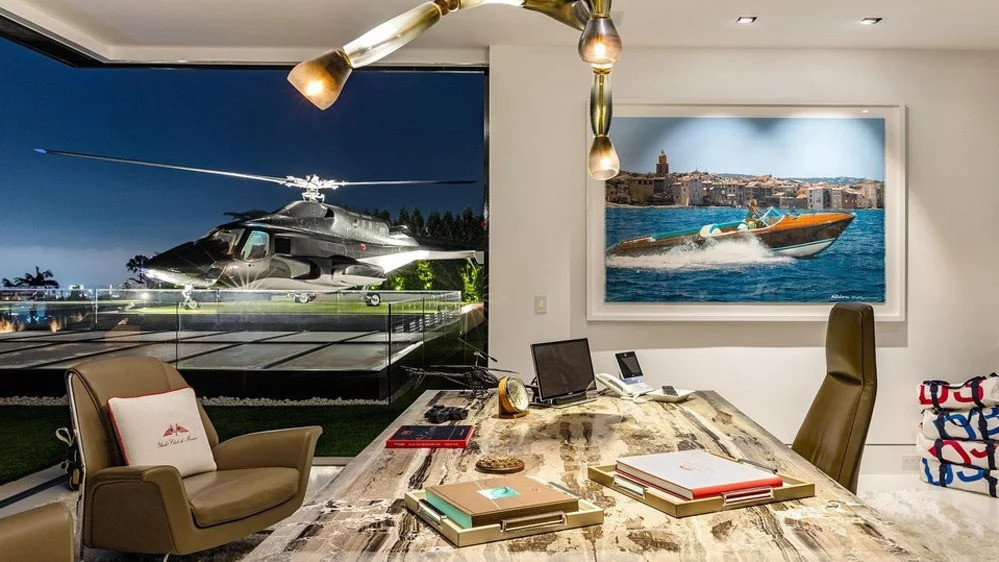 Он носит красноречивое название Billionaire Mansion (Особняк Миллиардера), имеет взлетную площадку для вертолета, кинотеатр на 40 кресел и игровую комнату, безрамочный бассейн, коллекцию изысканных алкогольных напитков и собрание редких автомобилей.