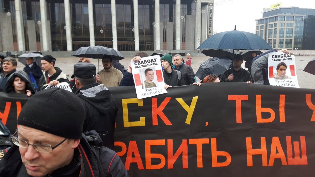 Эти требования обозначил во время короткого митинга на Октябрьской площади один из лидеров БНК, экс-кандидат в президенты на выборах 2010 года и бывший политзаключенный Николай Статкевич.