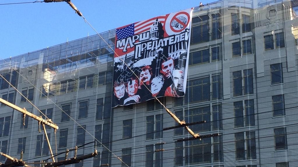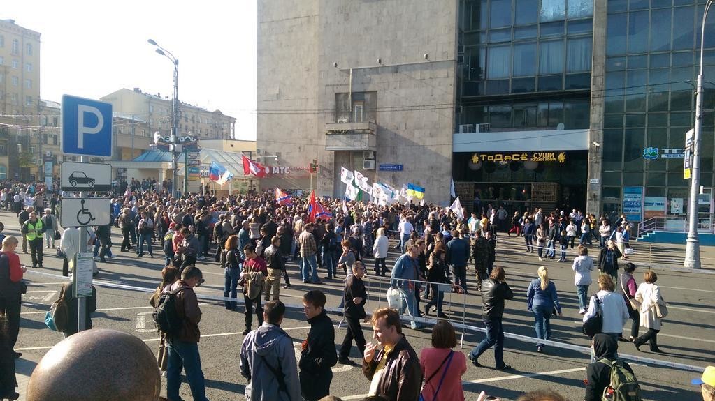 Как сообщают российские СМИ, одновременно с "Маршем мира" на Пушкинской площади решили провести свое шествие сторонники "Новороссии " и "ДНР". Случилась потасовка. !zn