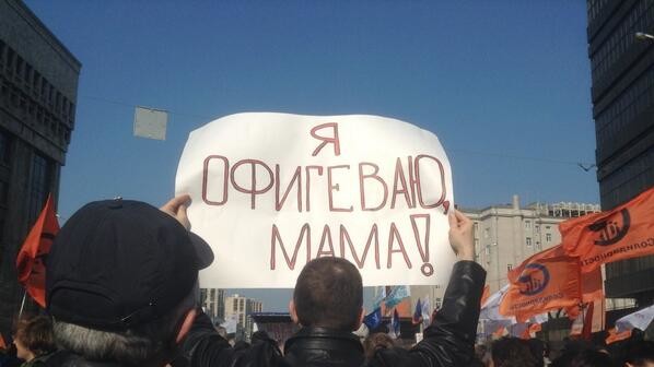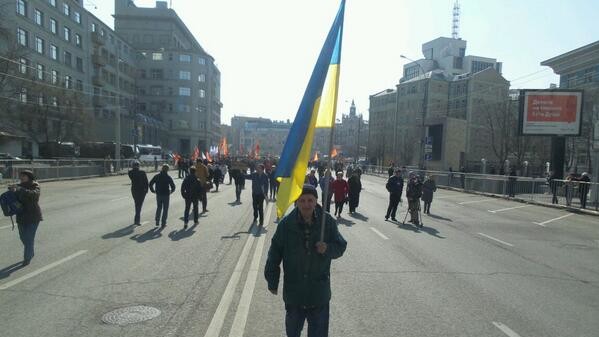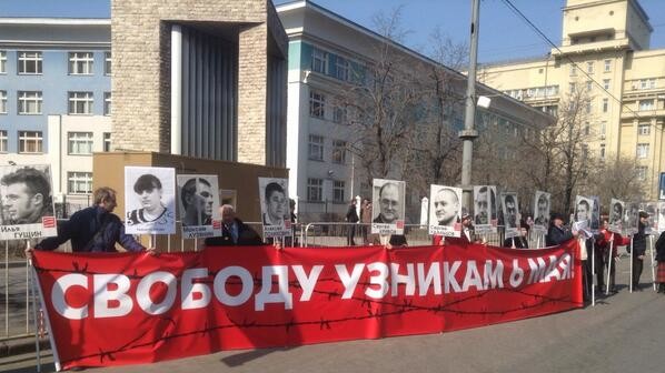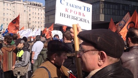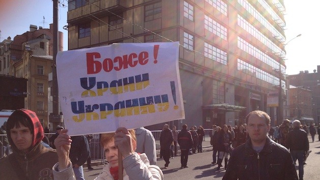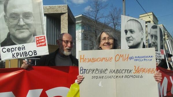 Официальная тема мероприятия - защита свободы СМИ. Однако были и плакаты с требованиями освободить "узников 6 мая", у некоторых участников - символика цветов украинского флага.