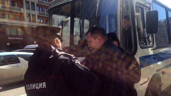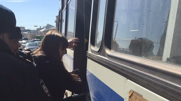 Оппозиционный политик Николай Ляскин выложил в Твиттер фотографии с одиночных акций. Участников задержала полиция. По словам Ляскина, среди задержанных – человек, который просто сфотографировал плакат.