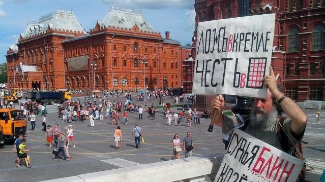 Активисты скандируют лозунг "Один за всех и все за одного", "Путин - вор", "Свободу!" и другие. Водители проезжающих мимо автомобилей гудят в поддержку участников акции.