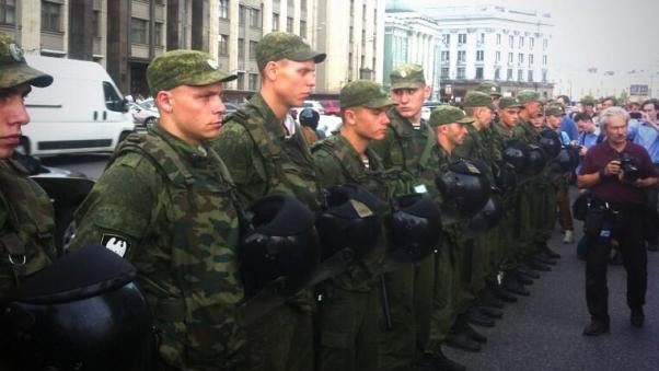 В центр города продолжают стягивать грузовики со спецназовцами, автобусы с бойцами ОМОН и автозаки.