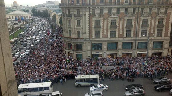 По данным российских журналистов, на акции собралось уже около 10 тысяч человек, и люди продолжают сходиться. Присутствует очень много журналистов, в том числе крупнейших зарубежных СМИ.