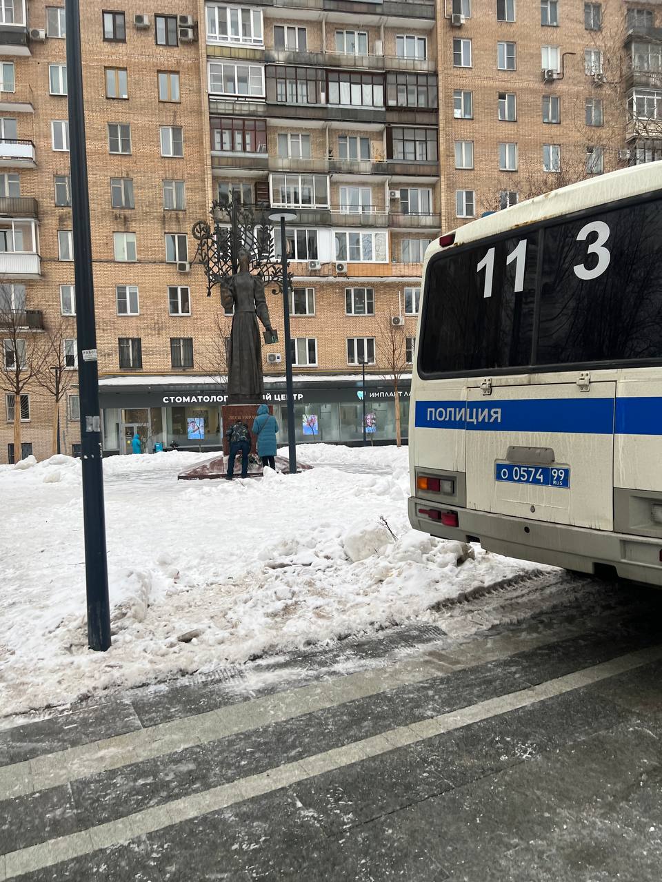 По информации журналиста Плющева, цветы и игрушки были перенесены к скульптуре "Содружество", которая является символом "единения славянских народов". У самого памятника Лесе Украинке теперь дежурит полицейский автозак, хотя это не останавливает некоторых людей.
