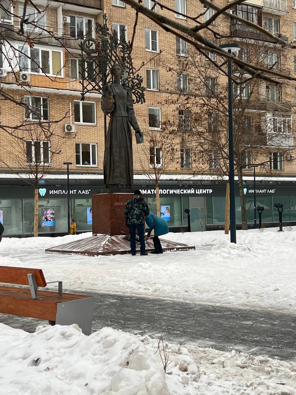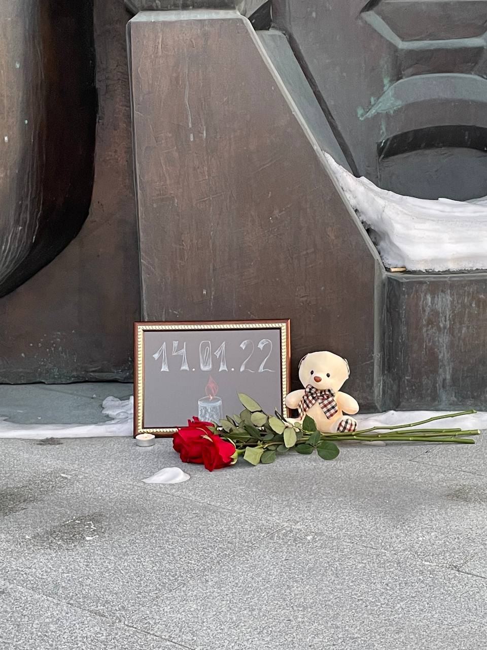 В столице государства-агрессора 16 января заметили фотографию с разрушенным домом у подножия памятника Лесе Украинке – туда приносили цветы и игрушки. За день масштаб стихийного мемориала значительно увеличился, однако уже в ночь на 18 января московские коммунальные службы убрали оставленные вещи.
