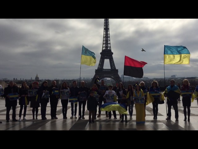 "Партнеры Министерства информационной политики, сеть народных дипломатов Украины Global Ukraine в Париже вышли к Эйфелевой башне", - написала на своей странице в Facebook первый заместитель министра.