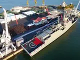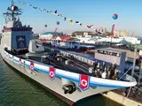 Во время церемонии Ким в своей речи сказал, что военный корабль будет передан ВМС в начале следующего года.