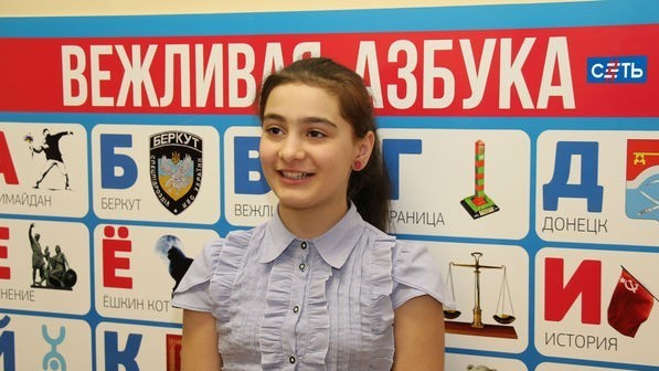 Так, российским детям рекомендуется учиться читать, исходя из того, что "А" обозначает Антимайдан, "Д" - мятежный Донецк, где идет противостояние сепаратистов с киевскими властями, а "П" иллюстрируется портретом Путина.
