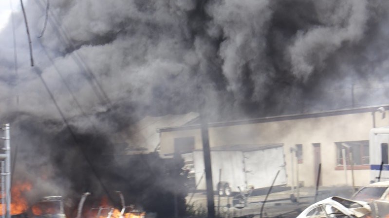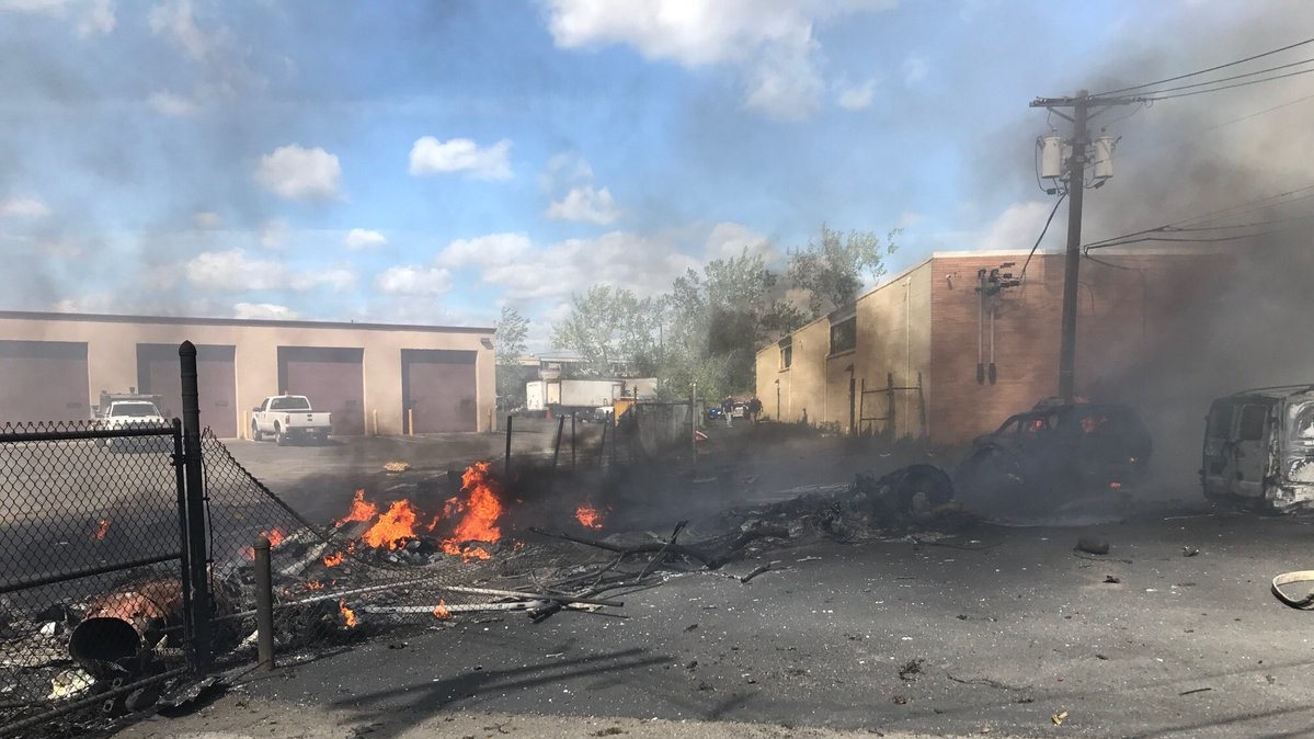 Самолет врезался в складское помещение, в результате чего несколько зданий загорелись. На кадрах видео с места событий видно, как оттуда поднимается густой шлейф дыма. Так как самолет упал в промышленной зоне, удалось избежать жертв среди местного населения. В результате аварии части фюзеляжа, двигатели и колеса разлетелись в разные стороны. Пострадали несколько легковых машин на стоянке.
