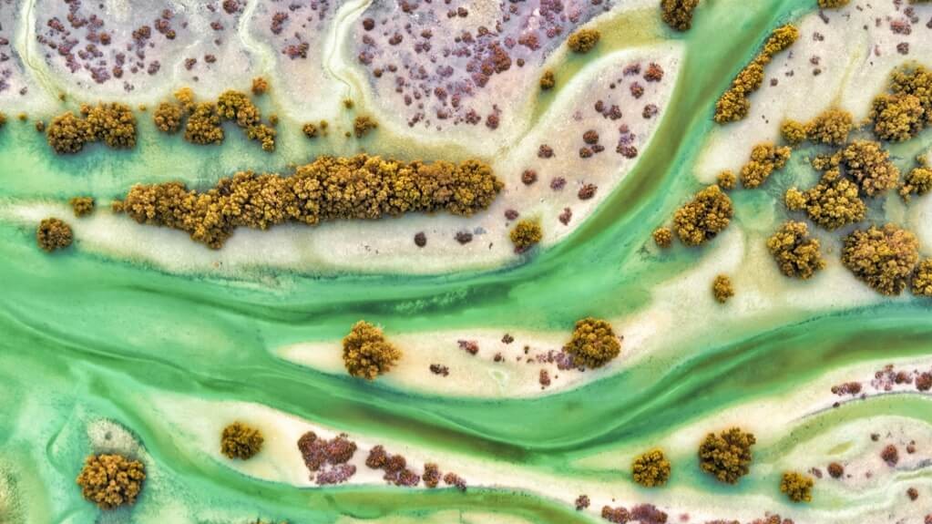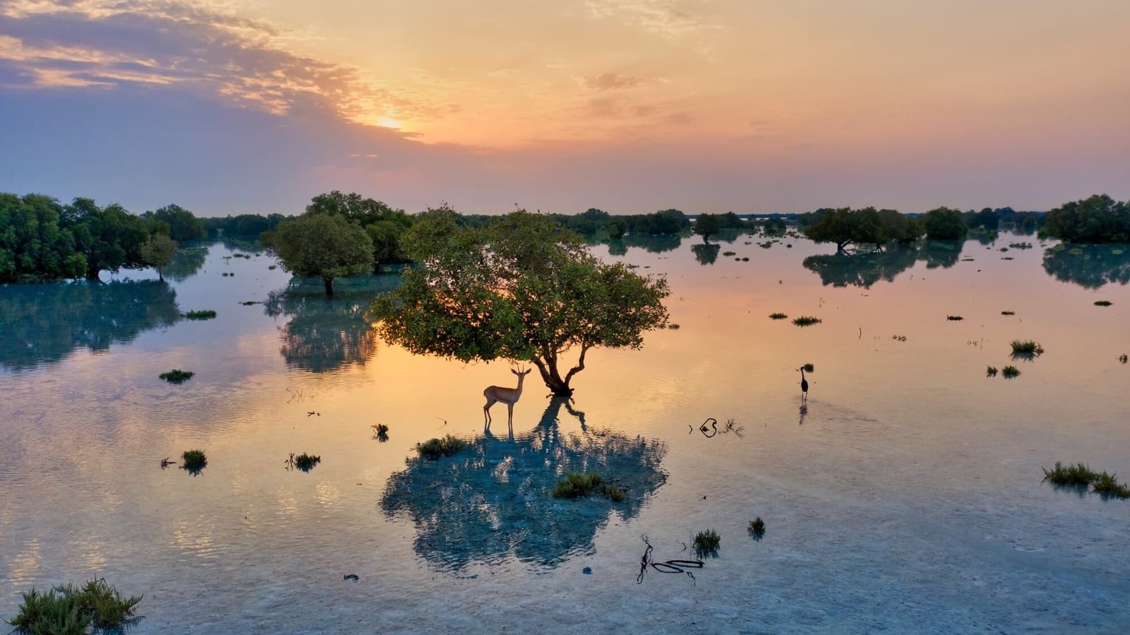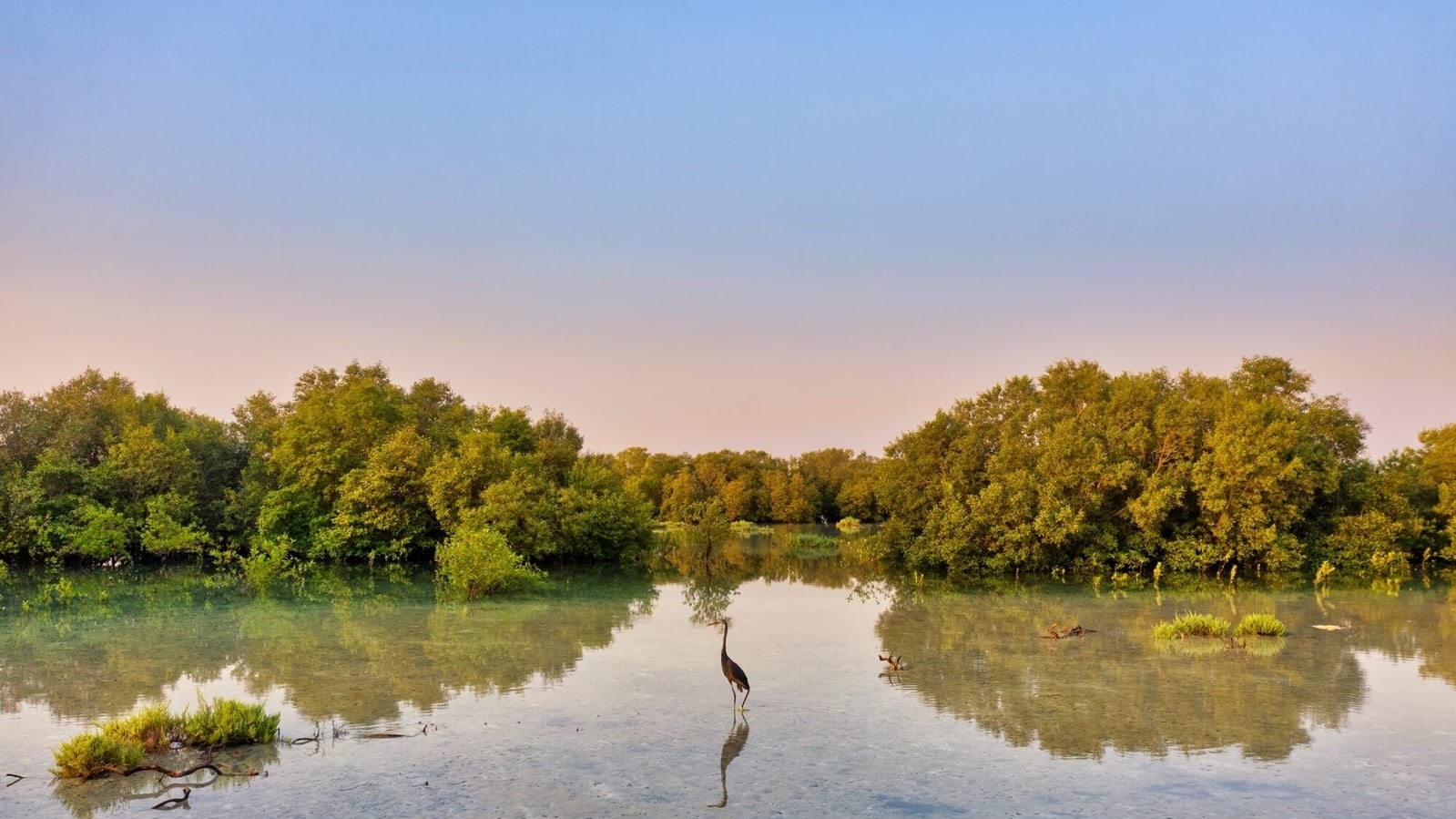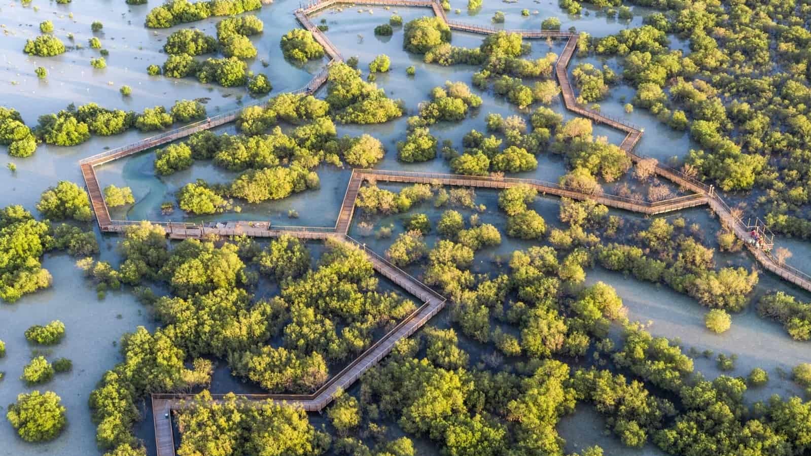 В Jubail Mangrove Park проложены деревянные дорожки, построенные над водой в мангровых зарослях.