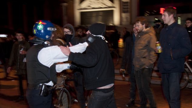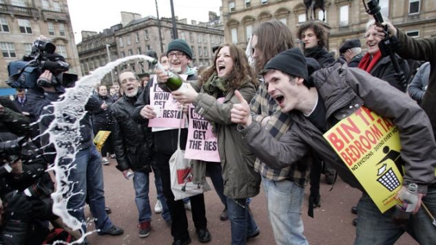 В Бристоле шесть сотрудников полиции получили ранения, когда пытались разогнать около 200 человек, отмечавших это событие как радостное. Митингующие забросали стражей порядка бутылками и жестяными банками из-под напитков. Один полицейский был доставлен в больницу. Одного из демонстрантов арестовали за участие в беспорядках, сообщает газета The Telegraph. Повреждения получил автомобиль полиции.