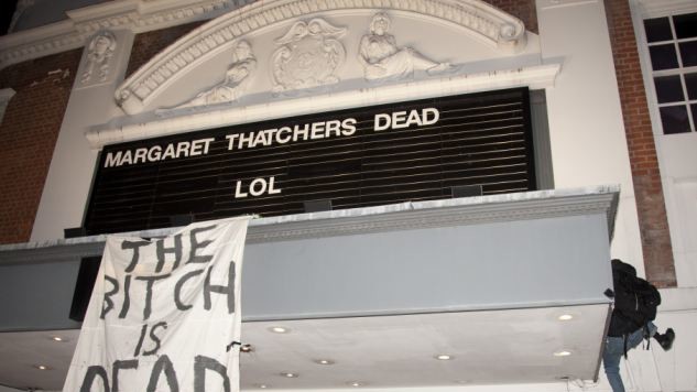 Хулиганы нацарапали граффити "антитэтчеровской" направленности на стенах домов в Брикстоне. Протестующие также забрались на крышу кинотеатра Ritzy и сделали в афише оскорбительную надпись: "Маргарет Тэтчер мертва - LOL".