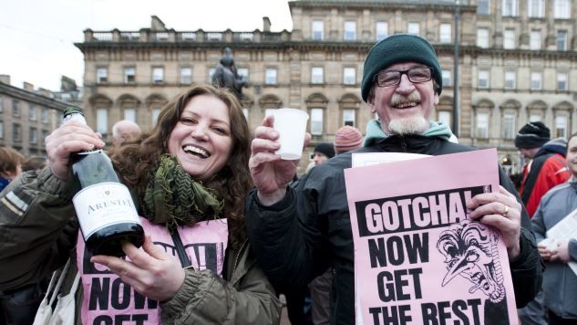 Толпа из 300 человек также собрались в Глазго на одной из центральных площадей. Там также пили шампанское по поводу смерти Маргарет Тэтчер и запускали воздушные шары. В митинге участвовали представители Коммунистической партии, Социалистической партии, Социалистической рабочей партии.