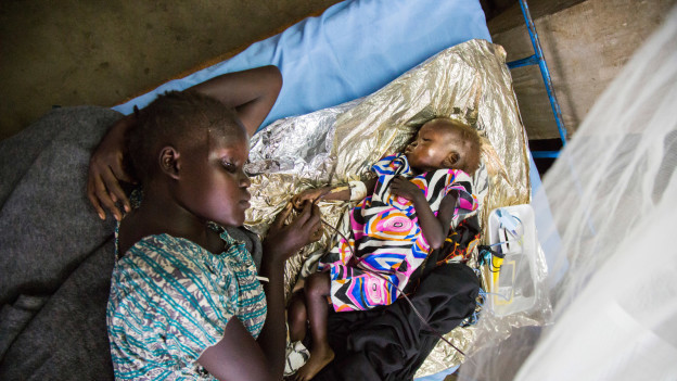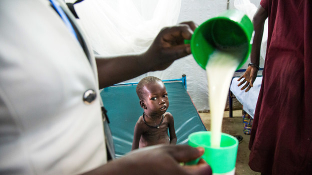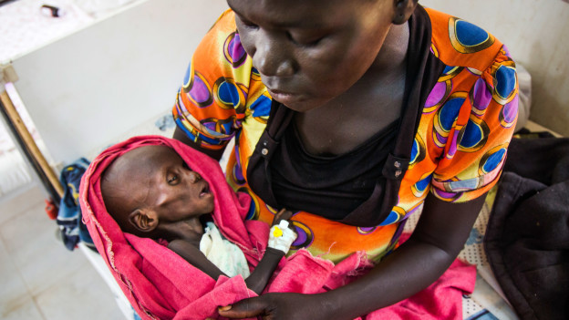 От острого истощения страдает более миллиона детей в Южном Судане. Более четверти миллиона детей - на грани голода.