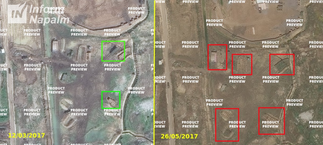 Так, соответствующая военная техника была обнаружена на спутниковом снимке от 12 марта 2017 года в точке с координатами 35.403243, 35.954038.
