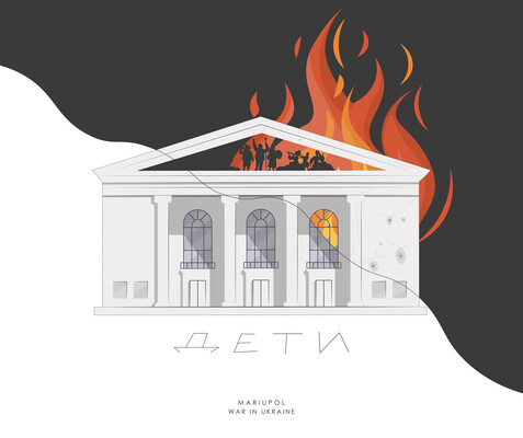 Цинизм этого преступления — и в гигантской полотняной ширме с изображением литературных символов страны-агрессора: Александра Пушкина, Льва Толстого… Такой ширмой через несколько месяцев «прикрыли» разрушенное здание театра, огромную братскую могилу горожан. Но захватчики пошли еще дальше, и в конце 2022 года снесли здание, заметая следы преступлений.