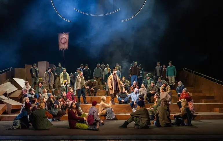 Но вернемся ненадолго в прошлое к самому важному — истории сценической жизни оперы «Золотий обруч», премьера которой должна была состояться в год ее написания. Тогда идеология и критика помешали. Но уже в течение 1930 года география оперы менялась: Одесса, Киев, Харьков, Львов... Соответственно и названия были разными: «Захар Беркут» (Одесса, режиссер Семен Бутовский), «Беркуты» (Киев, режиссер Владимир Манзий) и «Золотий обруч» (Харьков, режиссер Николай Фореггер). Ни в одном из названных городов постановка не задержалась надолго и десятилетиями ждала возобновления. Из исследований музыковедов известно, что тогдашняя критика писала о «сложности музыки, невозможности охватить и понять оперу после одного просмотра». Как представитель современного театроведения, пересмотревшая сценарно-драматургическую постановку на три действия (режиссерскую общую концепцию) Ивана Урывского, замечу, что каждое из слов-характеристик критиков 1930-х годов подходит к «Золотому обручу» оперного прочтения 2025 года. Плюс есть триггеры сегодняшнего дня, независящие от режиссера, — смартфонозависимая публика, часть которой классически опаздывает, а другая комментирует увиденное громким шепотом. Здесь жанр «трагедия в зале» сработал в каждом из трех действий оперы.