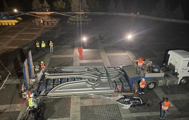 Часть, где был расположен герб СССР, полностью закроют пластинами из стали, на которые установят украинский тризуб. Он будет больше по размерам, чем советский герб.