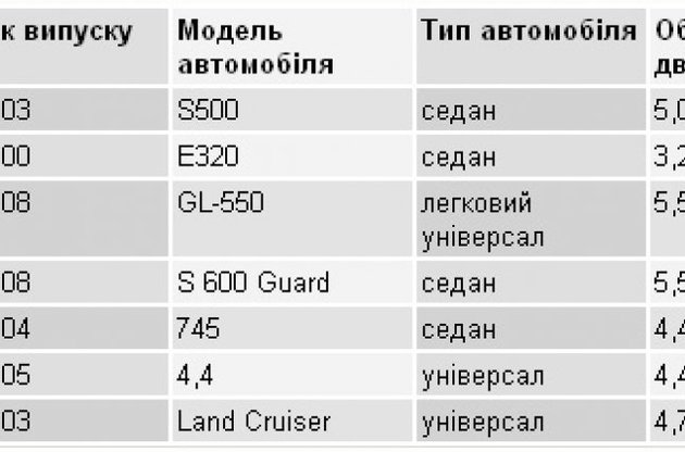 Заказано обслуживание автомобилей Mercedes-Benz S 600 Guard, Mercedes-Benz 500, Mercedes-Benz 320 Mercedes-Benz GL-550, BMW-745, Range Rover, Toyota Land Cruiser.