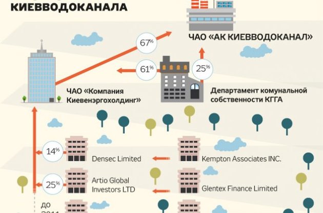 Что касается "Киевводоканала", то, как писало ZN.UA, по официальной версии большинство акций принадлежат Департаменту коммунальной собственности Киева. Меньшая часть - загадочным частникам. Зашли они туда не напрямую, а через созданную в 2008-м "прокладку" - компанию "Киевэнергохолдинг" (КЭХ). В ней около двух третей получил город, остальное записали на кипрские компании Densec Limited и Zarova Limited (позже заменят на Artio Global Investors LTD). Их номинальные владельцы - то недосягаемые Белиз и Виргины, то кипрские аборигены.
