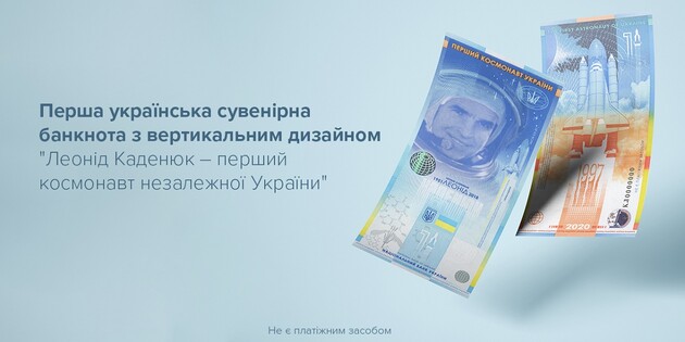 Национальный банк Украины 26 ноября 2020 года выпустил первую украинскую сувенирную вертикальную банкноту, посвященную первому космонавту независимой Украины Леониду Каденюку. Об этом сообщает пресс-служба ведомства.