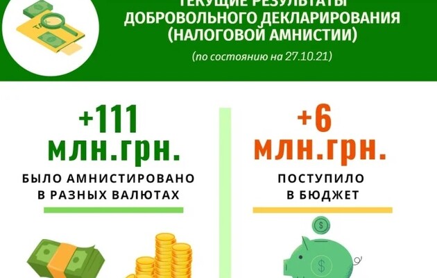 Результаты налоговой амнистии за 2 месяца: задекларировано 111 млн. грн