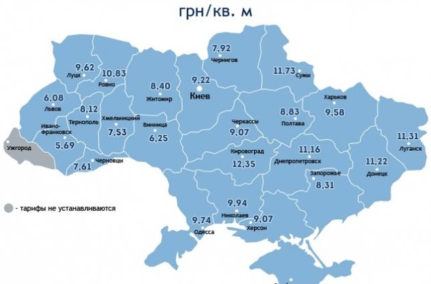 В разных регионах стоимость тепла будет значительно разниться. Самые высокие тарифы среди областных центров и крупных городов будут в Кривом Роге (12,94 грн.), Кировограде (12,35 грн.) и Сумах (11,73 грн.). Меньше всего придется платить жителям таких городов как: Ивано-Франковск (5,69 грн.), Львов (6,08 грн.), Винница (6,25 грн.).