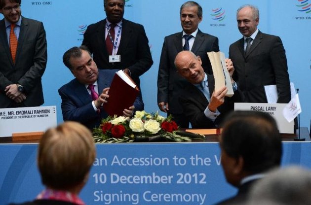 Только в июле 2010-го Таджикистану был присвоен статус государства наблюдателя, а 10 декабря 2012 года президент Таджикистана Эмомали Рахмон и генеральный директор ВТО Паскаль Лами наконец подписали протокол о вхождении республики в эту организацию.
