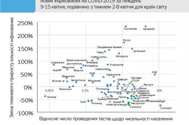 По количеству проверок на COVID-19 в расчете на миллион человек Украина занимает последнее место среди стран Европы. По данным сайта worldometers.info, на 16 апреля в Украине было проведено всего около 7 тысяч проверок, тогда как в соседней России таких проверок было около 900 тысяч. Это означает, что информация о количестве больных и, в меньшей степени, умерших, предоставляемая профильным министерством, может не отражать настоящий масштаб эпидемии, учитывая вынужденную узость круга лиц, имеющих, согласно протоколу, доступ к проверке на вирус. Но что тогда она отражает? Возможно, она показывает 10–50% всех новых случаев заражения, и если условием для проверки является лишь "контактирование с инфицированным лицом", со временем относительное число регистраций новых случаев будет снижаться, потому что будет все больше людей, которые инфицировались из-за тех, кто не был проверен.