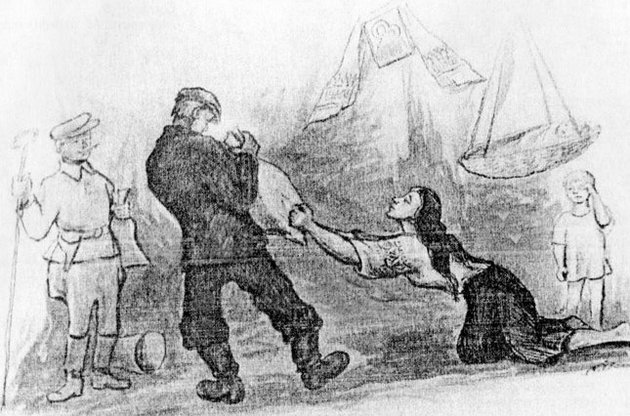 "7 декабря 1932 г. Все время идет хлебозаготовка, отдают под суд от пяти и до трех лет, из хат выгоняют, хлеб до одного фунта забирают. Словом - отдай весь хлеб, а сам с детьми оставайся на голодную смерть".